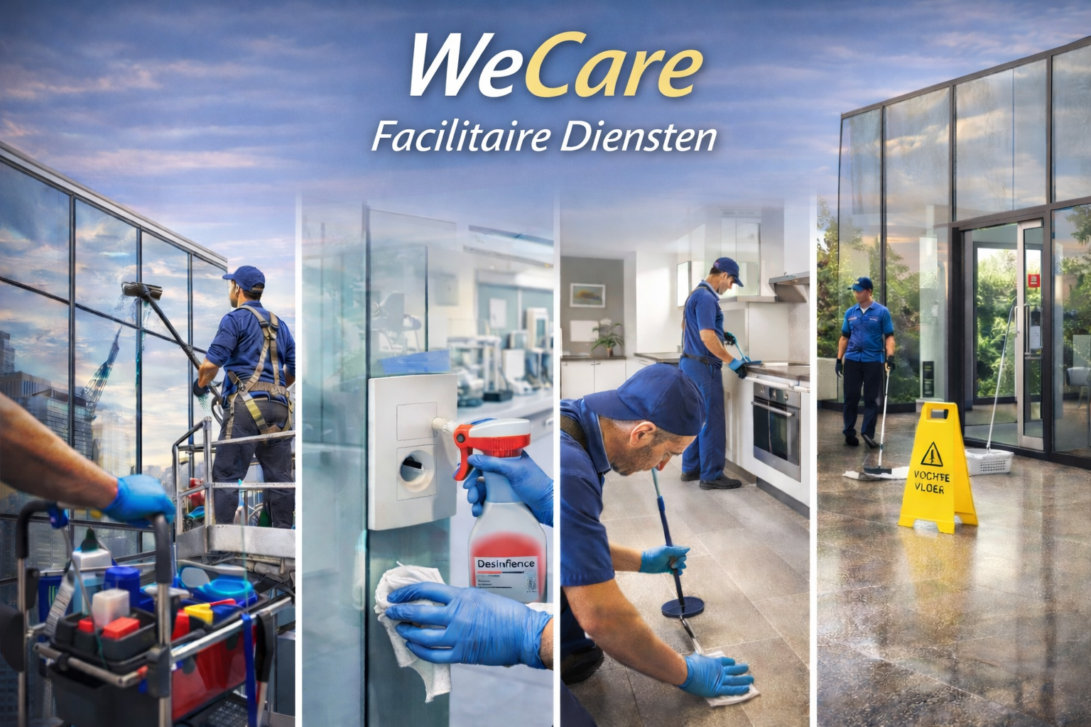 Bij WeCare Facilitaire Diensten geloven we dat een schone leef- en werkomgeving bijdraagt aan comfort, productiviteit én gezondheid. Daarom bieden wij hoogwaardige, betrouwbare en op maat gemaakte schoonmaakoplossingen voor elke sector – van woningcomplexen tot onderwijsinstellingen en kantoren. Met WeCare kiest u voor kwaliteit, continuïteit en een omgeving waar bewoners, medewerkers en bezoekers zich prettig voelen.